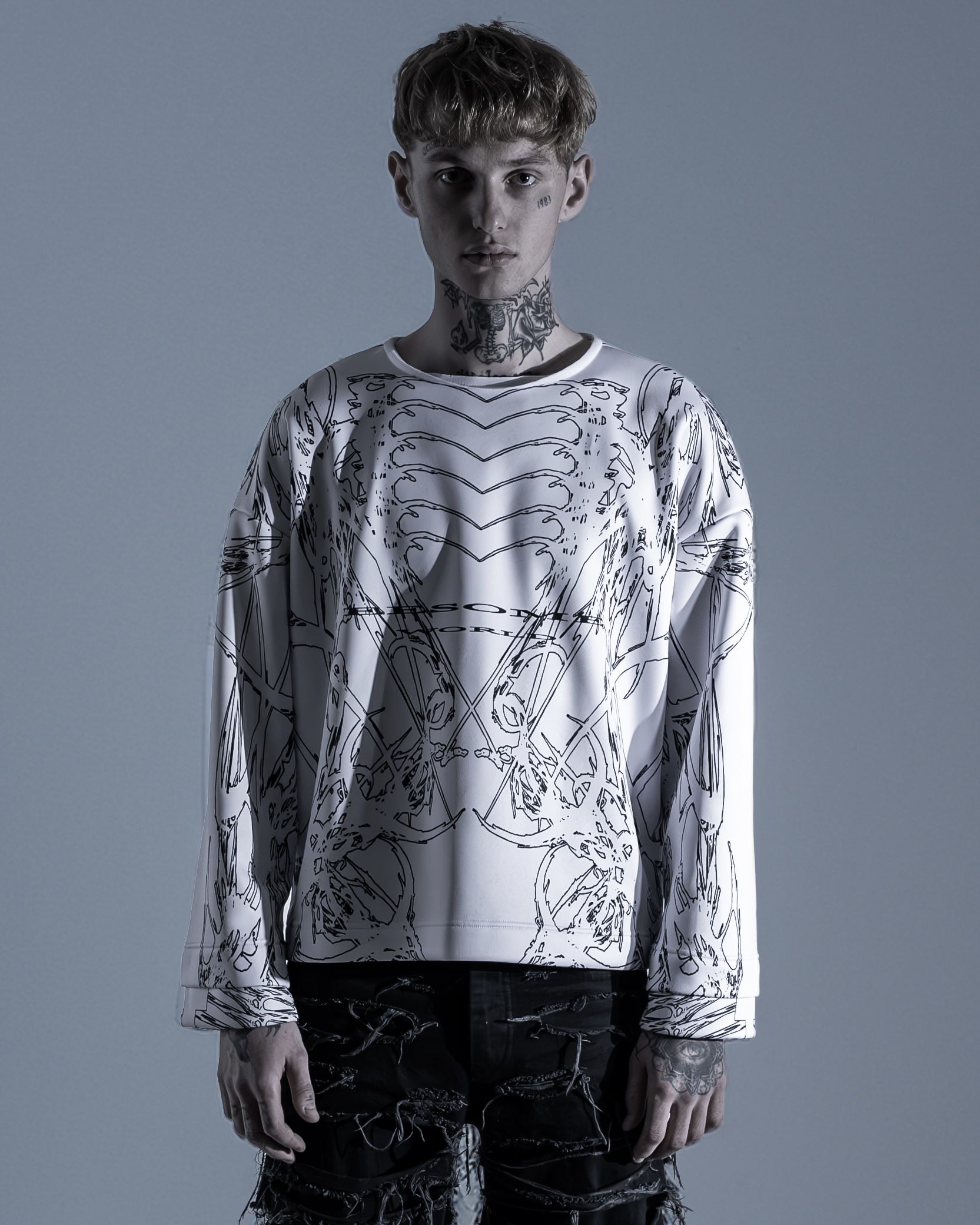 100% BAWEŁNA SINGLE JERSEY/300GSM KOLOR – BIAŁY KRÓJ BOXY RĘKAWY W KSZTAŁCIE DZWONU PODWÓJNE MANKIETY SUROWY DEKOLT EFEKT POSTARZANIA DRUK W CAŁOŚCI WYKONANY RĘCZNIE PROJEKT: EESOME WYKONANE W POLSCE KAŻDY EGZEMPLARZ JEST WYJĄTKOWY WYSYŁKA W CIĄGU 1-2 DNI ROBOCZYCH ! Prać i prasować na lewej stronie !